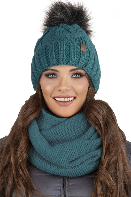 Vivisence Damen Bommelmütze Und Loop-Schal Mit Bommel Ideal Für Wintertage 7014, dunkeltürkis