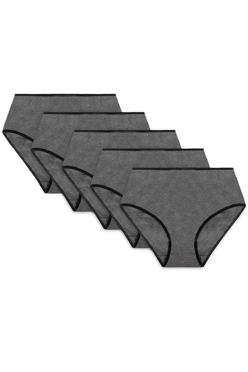 Vivisence Dame Slip Hoher Bund Voll Klassisch Unterhose Baumwolle Alltag 4017, schwarzes Gummiband:graphit 5-pack