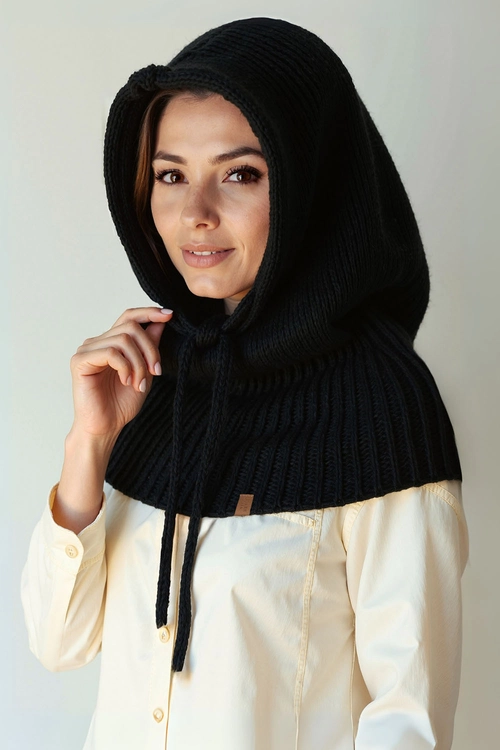 Ein femininer Kapuzenschal, der Mütze und Schal in einem Accessoire vereint. Die Kapuze legt sich weich um Kopf und Hals und sorgt für ein behagliches Tragegefühl an kühleren Tagen. Mit dem Kordelzug lässt sich die Passform individuell anpassen – so bleibt alles dort, wo es sein soll, und Wind hat weniger Chancen.