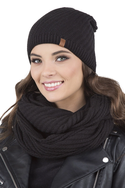 Trendiger Set für Frauen: Mütze und Loop-Schal.