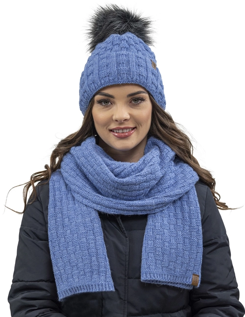 Vivisence Wintermütze mit Bommel Damen Warmes Ideal Für Kalte Wintertage 7015, Denim