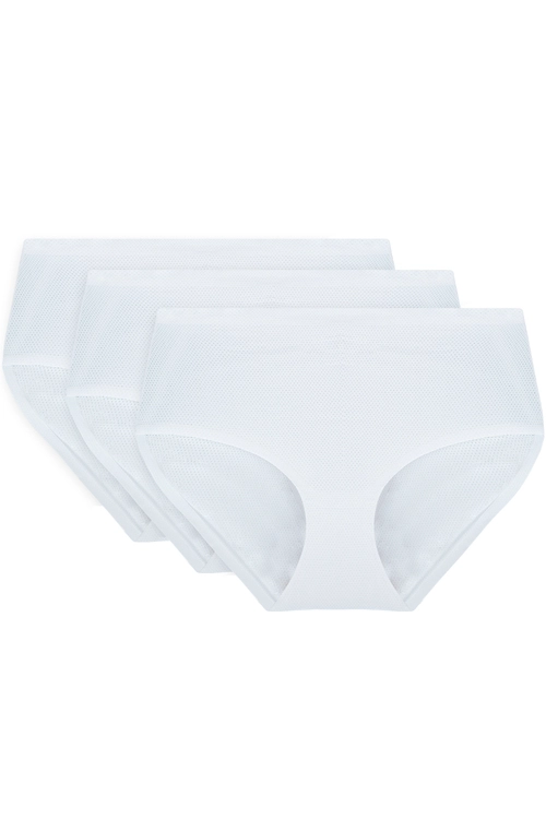 Vivisence Dame Slip 3-er Pack Unterhose Glatt Voll Nahtlos Hoher Bund 4013, weiß