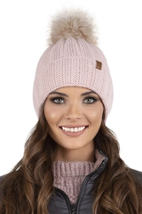 Vivisence Damen Bommelmütze Winter Fleecefutter Kunstpelzbommel Strickmützen 7019, puderrosa