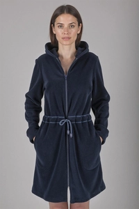 Vivisence Women's Robe Cotton with Zipper Warm Fabric Perfect for Evening Spa 5012, dark blue