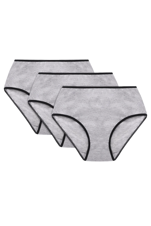 Vivisence Culotte Classique Slip pour Femme Lot de 3 Figi Silhouette Élégante 4016, bande noire : gris