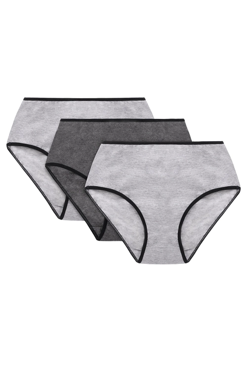 Vivisence Culotte Classique Slip pour Femme Lot de 3 Figi Silhouette Élégante 4016, bande noire : gris/gris foncé/gris