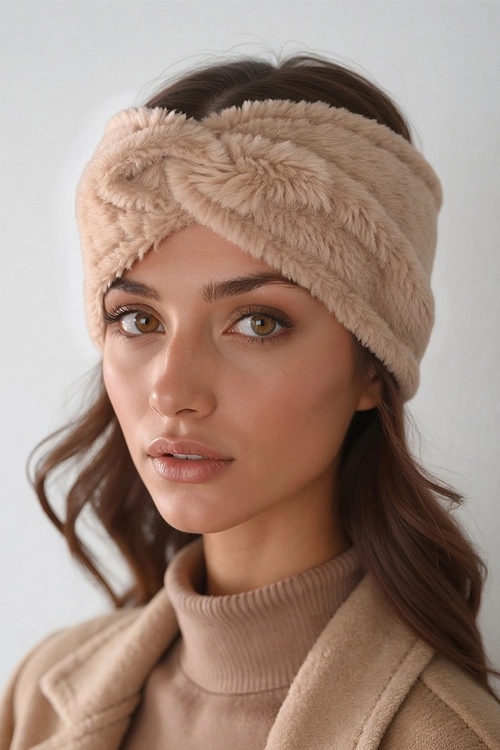 Vivisence Femme Bandeau Maille Duveteuse avec Torsade Confort et Chaleur, beige