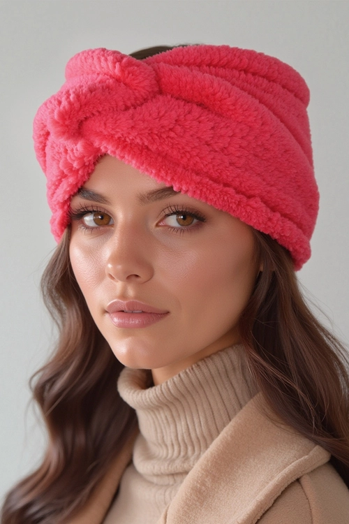Vivisence Femme Bandeau Maille Duveteuse avec Torsade Confort et Chaleur, framboise