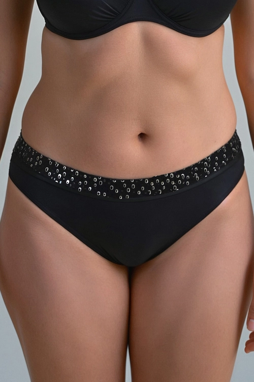 Vivisence Bas de Maillot de Bain Femme Slip de Bain Coupe Ajustée En Tissu Résistant Haute Qualité Anti-Décoloration Et Déformation 3230M, noir-argenté