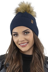 Vivisence Bonnet Femme Avec Pompon Pour L’Hiver En Fil Chaud Style Automnal 7042, bleu foncé