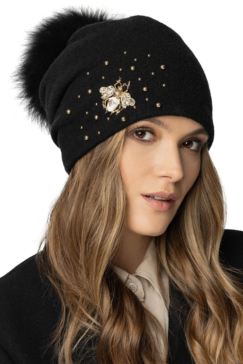Vivisence Bonnet À Pompon Femme En Laine Vierge Fait Main Pour L’Hiver 7079, noir