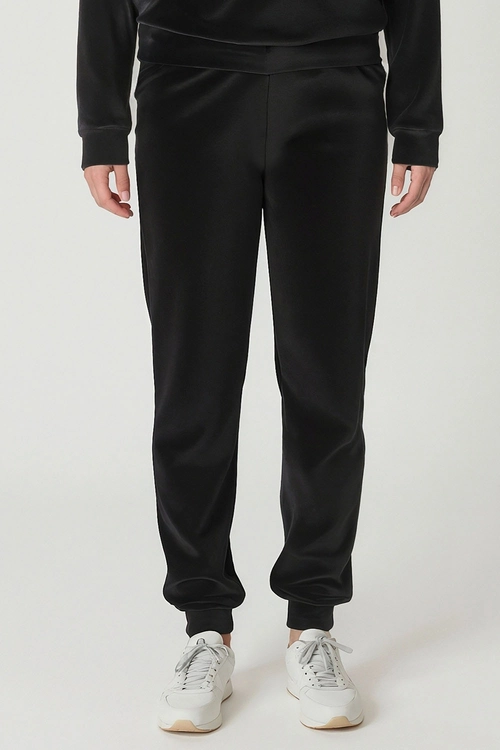 Vivisence Pantalon Femme Décontracté Coupe Ample Taille Élastique Poches Latérales Chevilles Resserrées Tenue Confort Détente Maison Loisirs Lounge Jogging, noir